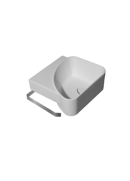 Steel towel rail for Orion cloakroom basins, designed to blend in practically and elegantly with the whole. Its sturdy structure and careful finish offer a functional solution for keeping towels close at hand without compromising the aesthetics of the space.